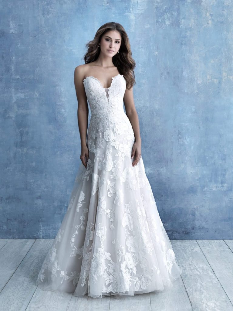 This is one of my all time favorite wedding dress designer brands. Allure features on trend, modern silhouettes with glimpses of classic Hollywood glamour. They are well known for having excellence in design and craftsmanship in creating gowns for special moments of a bride’s wedding day. They use fantastic quality fabrics that are soft, with light cotton lace and ethereal English net, rich satin with intricate Swarovski crystals that will stay on the dress pre and post wedding. Allure gowns are affordable and range anywhere from $1000-$2500.