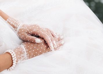 When I think of gloves, I think of sophistication and fanciness. This older but traditional notion of wearing gloves on your wedding day is making its way back into bridal fashion. These now come in different fabric variations and lengths from short to long, while being made with solid or sheer fabric.