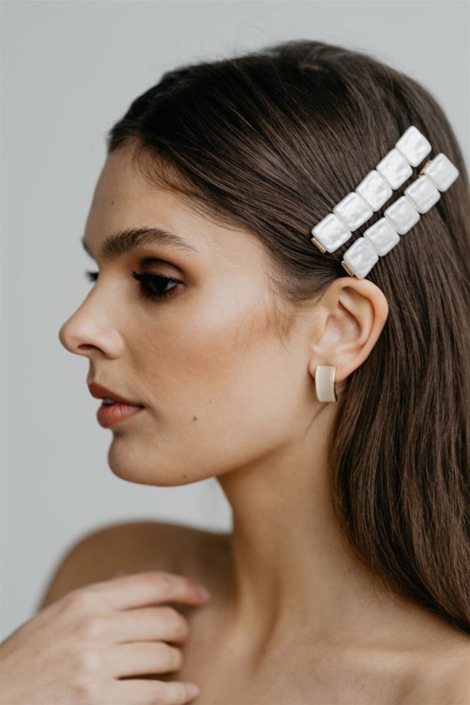 Don’t like the boldness of a hair bow? No problem, but I would try some hair clips. From pearl barrettes, floral fasteners, these are perfect to pull up your hair after you take off your veil after the ceremony in preparation for the reception.