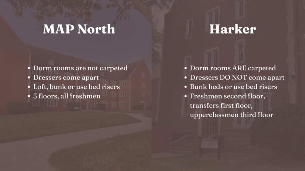 Explore freshman girl dorm options at Grove City College! Here is a video giving a brief tour of the MAP North and Harker dorm rooms that incoming female, freshman students may choose from. In this video, we point out the differences between the furniture of the two different dorms as well as the features of both buildings so that incoming female students know what to expect and make a better-informed choice while participating in the ‘room draw’ process.