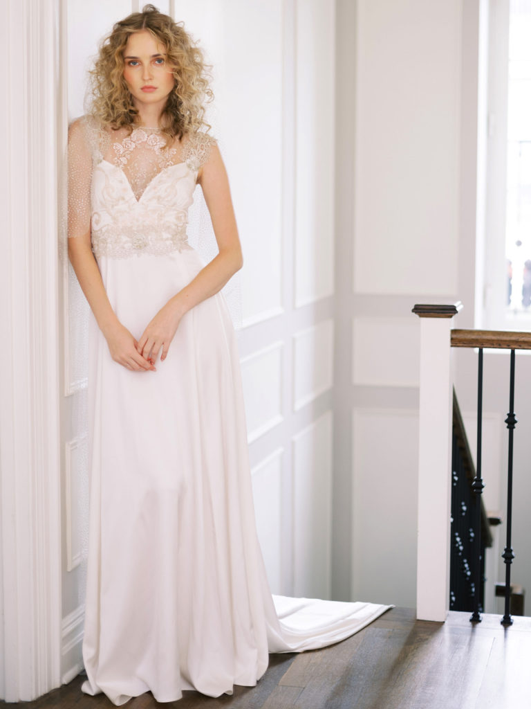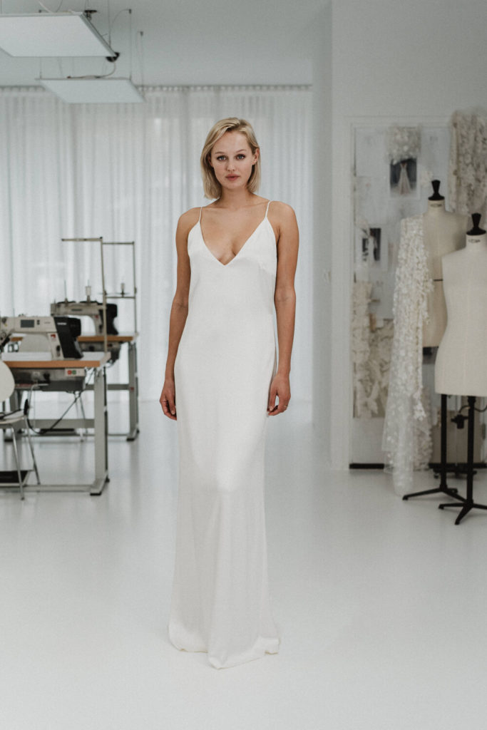 The phrase ‘less is more’ sums up this style perfectly. The slip dress is sophisticated, simple, and very chic. These dresses hug a brides curves in the hips and is designed to fit the bride like a glove. You will see features like a cowl neck or back detailing frequently on these dresses to give it more character.
