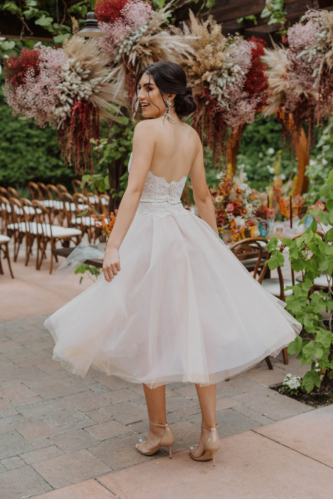 If you are searching for a style that incorporates the “something old, something new” quality, then this vintage-esque style is for you. This tea-length, ankle grazing style is the perfect middle ground between fashion forward and traditional sensibilities. It is definitely unconventional and will ‘wow’ your guests, as it says a lot about the bride’s personality, she’s not afraid to be bold and take risks even for her wedding day.